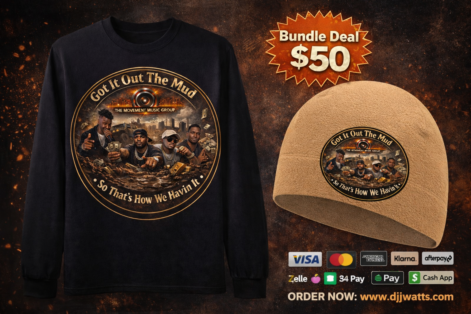 The “Got It Out The Mud” Long Sleeve Tee represents hustle, resilience, and turning struggle into success. Designed by The Movement Music Group, this premium black long-sleeve features a bold, detailed front graphic that speaks to the grind and the mindset behind it.