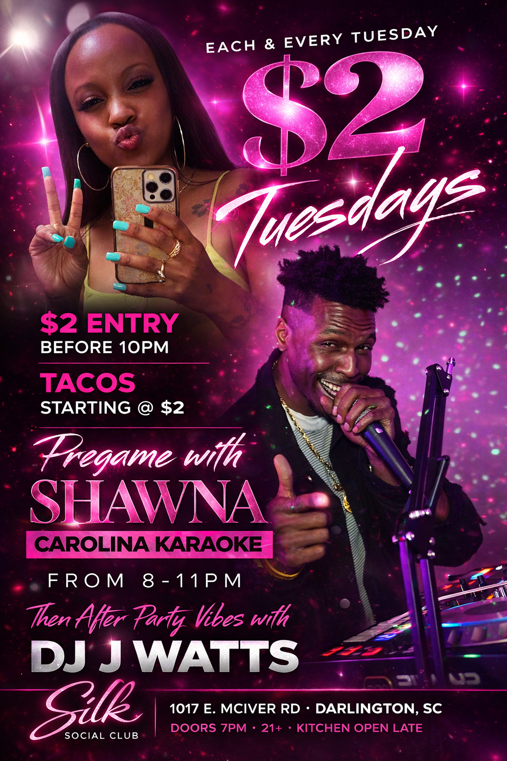 $2 Tuesdays is officially going down at Silk Social Club in Darlington, SC β bringing you the perfect mix of vibes, food, and energy every single week.