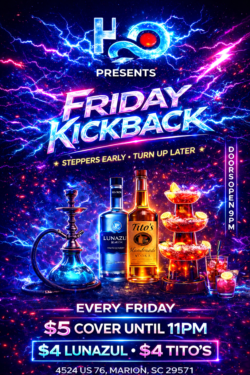 Whether you’re coming to vibe out, celebrate, or just enjoy a night with good people and great music, Friday Kickback at Club H2O is the place to be.
